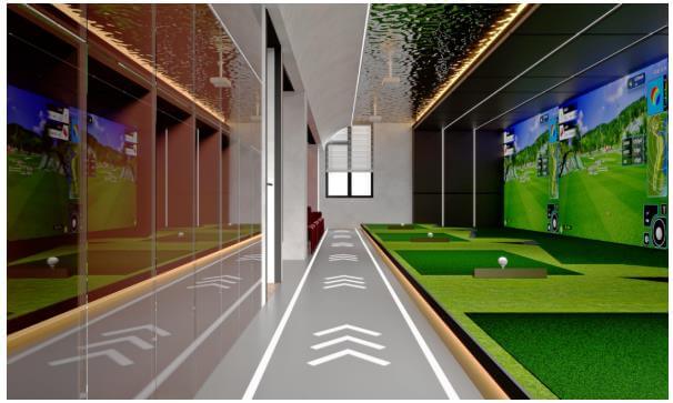 這是一個室內高爾夫項目,甲方想把室外高爾夫搬至室內,降低高爾夫的操作難度,利用了高科技讓真實的高爾夫運動便捷化、方便化、和低成本化。室內高爾夫俱樂部的概念布局實際上是從傳統(tǒng)的戶外高爾夫球場中獲得靈感,在那里玩家可以在果嶺、樹林和沙坑之間的沉浸式自然環(huán)境中行走。